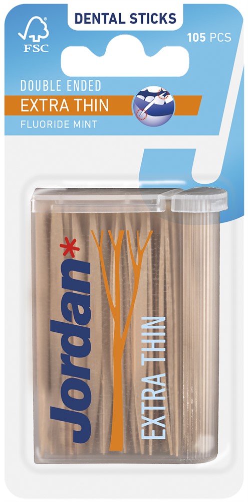 Jordan tandsticka är extra tunn och smaksatt med mint och tillsatt flour. Den är dubbelspetsad så du kan använda den från båda sidorna och gör de enklare att komma emellan vid tänderna.
