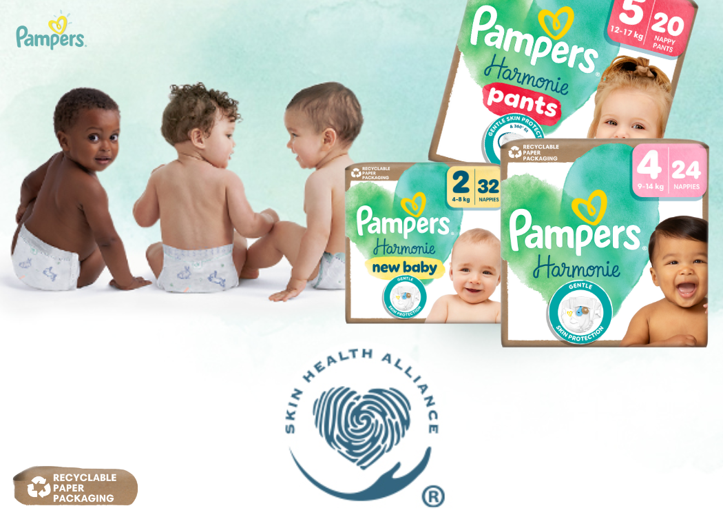Nu hittar du Pampers Harmonie i vårt sortiment - blöjor och byxblöjor framtagna för att ge ditt barn skonsamt och pålitligt skydd. Förpackningarna är tillverkade av återvinningsbart papper, vilket minskar plastanvändningen. De ger upp till 12 timmars skydd och torrhet, flexibel passform och praktisk fuktindikator.